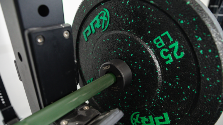 Like all crumb bumper plates, the PRx plates are very bouncy. When Amanda Dvorak (an editor on the Breaking Muscle team) dropped a barbell loaded with the 45s from hip height, it rebounded a couple of inches above her knees. This is important to note if you don’t want your barbell to bounce uncontrollably and damage other equipment in your home gym.