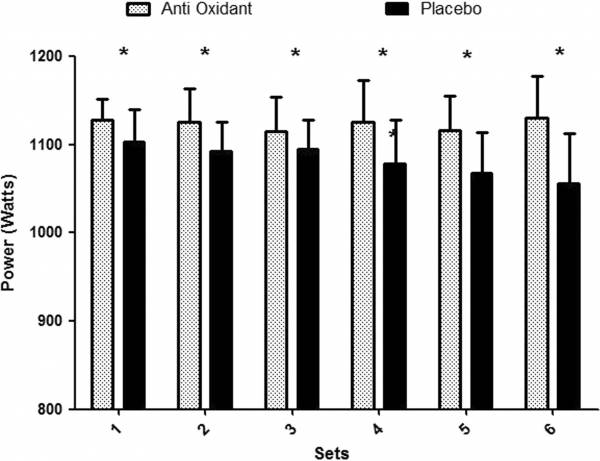 The results were clearly in favor of antioxidant use, but they were also a little confusing. The antioxidants allowed the participants to perform more work (i.e. more reps) at a greater velocity. As if that wasn’t enough to pique your interest, the benefit of more endurance and more speed extended across the entire workout. In other words, as you might expect, the placebo group experienced a waning in speed and power from the first set to the last, where the antioxidant group did not.