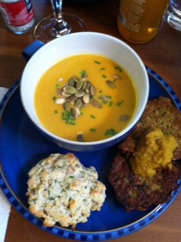 Now, the butternut squash soup was so good, and the weather so cold today, I decided to make the soup again for dinner and to freeze some for lunches…and wouldn’t that lunch be so much better with a savory scone accompaniment? But I decided to experiment a little more. I don’t always have milk on hand, and I don’t always have sour cream on hand. I needed to know if I could mix it up a bit.
