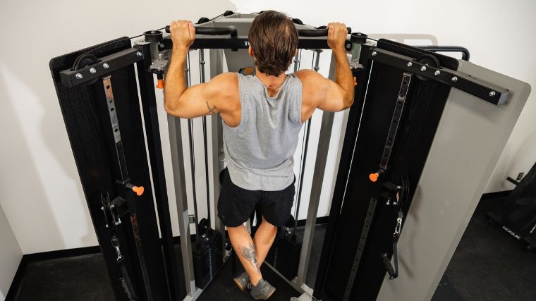 REP optimized the height of the guide rail for the trolley system so that your overhead exercises, like tricep pushdowns and lat pulldowns, can feel as similar to a commercial functional trainer as possible. They even added rubber grips and aluminum end caps to the pull-up bar, which offer three different grip variations: pronated, neutral, and wide grip. When we tested this machine, we found the rubber grips comfortable, but our hands slipped a lot once they started getting sweaty.